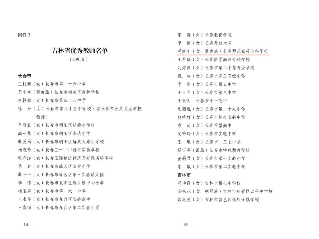 近日,吉林省人力资源和社会保障厅、吉林省教育厅联合印发了《关于表彰吉林省教育系统先进集体、先进工作者和优秀教师的决定》,授予我校特殊教育学院党总支书记冯晓华教授“吉林省优秀教师” 荣誉称号。
